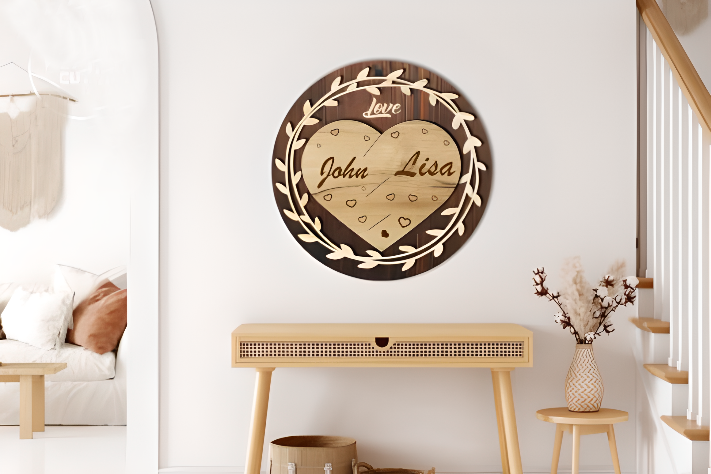 Heart Multilayer Wall Art Love Gift Name (Wood)